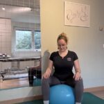 Assise sur un ballon de grossesse, réalisez des mouvements de bascule :